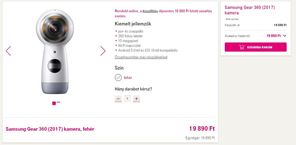 Verhetetlen áron fut ki a Gear 360 kamera a Telekomnál