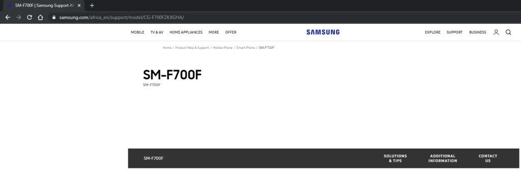 Történt ugyanis az, hogy az SM-F700F modellkód néven futó készüléknek elkészítették az aloldalát a Samsung Africa berkein belül. Nyilván semmi WÁÓ-faktorra ne számítsunk, mert ez teljesen rendben van, de ők már annyira elébe mennek a dolgoknak, amiből arra lehet következtetni, hogy biztosan várható a piacukra az összehajtható telefon második generációja, amit egyébként Bloom fedőnéven van emlegetve a társaság szlengjében.