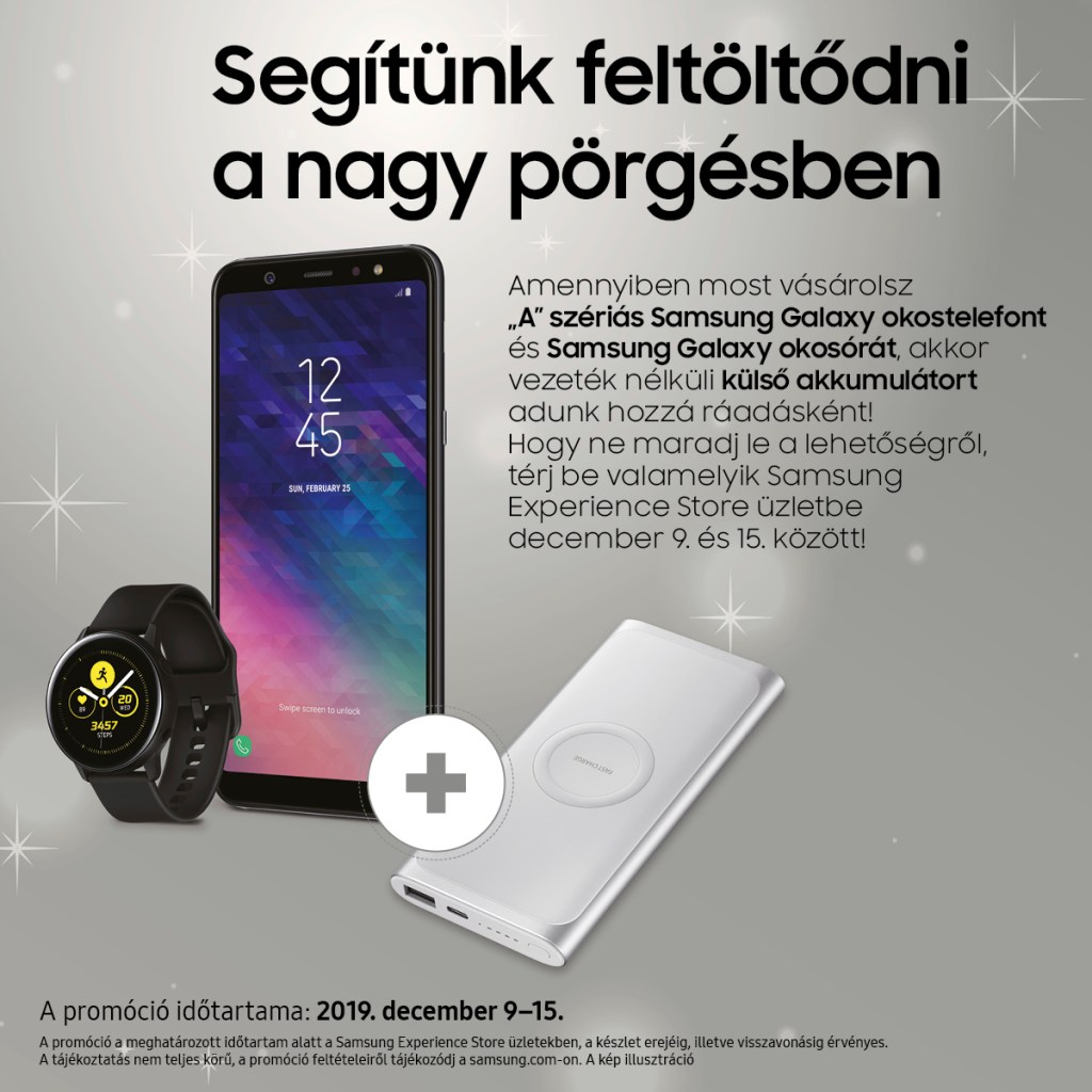 Ezzel egyidejűleg fut egy promóció, ami arra lenne kihegyezve, ha a fenti Ezüst napok alatt bármely Galaxy A-szériás telefonhoz vásároltok okosórát (Pl.: Galaxy Watch Active-ot, Galaxy Watch Active 2-t vagy Galaxy Watch-ot), akkor ajándékba mellé vezeték nélküli hordozható akkumulátor jár, ami SKU kód alapján: EB-U1200CSEGWW néven fut.