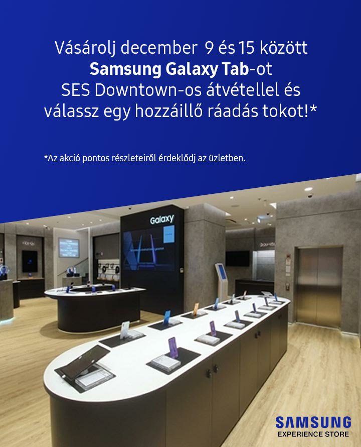 A felsőkategóriás tabletekre december 24-ig fut éppen egy promóció, amelynek lényege abban merülne ki, ha vásároltok Galaxy Tab S-szériát, akkor ajándékba jár mellé egy 500GB-os Samsung T5-ös SSD, amit egyaránt tudsz használni telefonhoz, tablethez és számítógéphez. Igen ám, azonban a nyáron nyílt Downtown SES-ben (Budapesten a Ferenciek terén) van egy másik ráadásos ajánlata, amiről kevesen tudnak. Nyilván az ajánlatok nem összevonhatóak, mivel az egyik márkabolt, a másik webshop rendelésre vonatkozik.