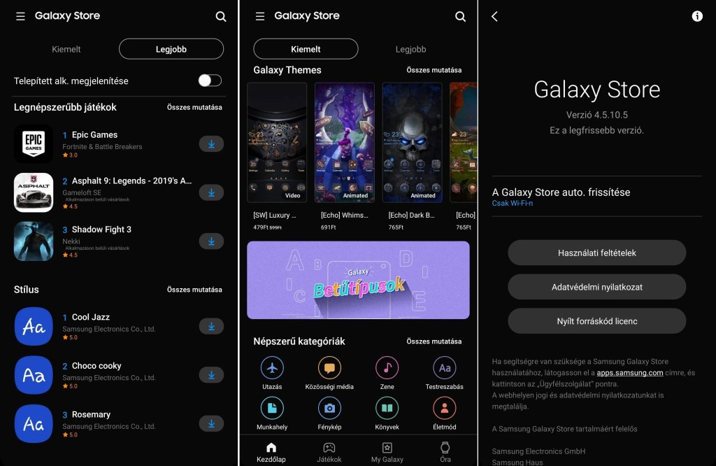 Aktiválása pofonegyszerű. Nem kell a Galaxy Store beállításai között keresgélni a funkciót; elég csak – miután lefrissítettük az áruházat a fenti verzióra vagy az annál újabbra – bekapcsolni az “Éjszakai mód”-ot – ha nincs automatizálva – és már át is áll az akkumulátor-kímélőbb megjelenítésre.