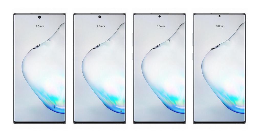 Zárásképpen már csak egyetlen dolgot emelnék ki, ami nem más, mint az előlap. Azt már egy ideje lehet sejteni, hogy a Galaxy Note10 családnál bemutatkozott Infinity-O stílust fogja megörökölni, illetve azt is, hogy még keskenyebb lesz a kivágás átmérője. Sőt, most már azzal is számolhatunk a spekulátorok által, hogy még kisebb kávával lesz ellátva. Nyilván a cél a screen-to-body ráta kimaxolása, ahol most a társaság házon belül bajnoka a Note10+ a maga 91%-os értékével.