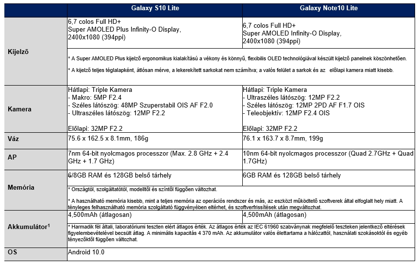 „Az elmúlt tíz évet a Galaxy S és a Galaxy Note sorozat világszintű sikere határozta meg. Ezek az eszközök a Samsung vezető iparági innovációit testesítik meg, a kiemelkedő teljesítménytől az intelligens megoldásokig és szolgáltatásokig. (…) A Galaxy S10 Lite és a Galaxy Note10 Lite elhozzák a legfontosabb prémium funkciókat.”