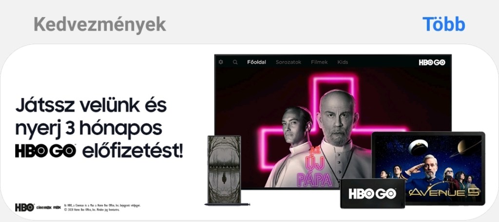 Most 2020. január 29-ig, éjfélig tart a játék, amelyben 3 hónapos vouchert lehet nyerni az HBO GO-hoz. Nincs más teendő, mint – miután letölteni a Play Store-ból az app-ot – elindítani, majd a ‘Kedvezmények’ menüpontban a hozzákapcsolódó ikonon keresztül kitölteni egy kérdőívet az adataiddal. És persze várni, hogy a szerencse melléd szegődjön. A nyerteseket e-mail formájában keresik fel.