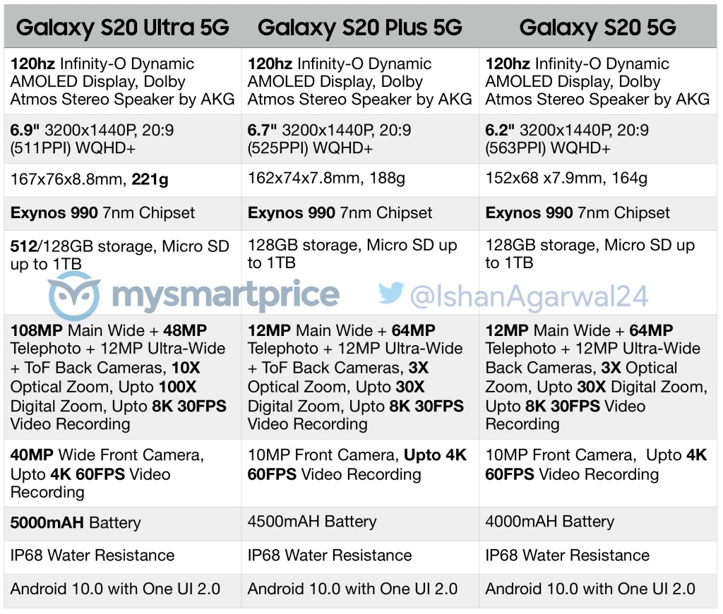 Három teljes hét még előttünk van 2020. február 11-ig, amikor a Samsung leleplezi a tavaszi csúcsmodelljeit. Az előző hetet Galaxy S20-as hírekkel zártuk, és hogy meglegyen a keretesszerkezet amondó vagyok, hogy most nyissuk is. Akkor a készülékek zoom-tartományára helyeződött a hangsúly, most azonban Ishan Agarwal összegyűjtötte táblázatba azokat a főbb dolgokat, amik valószínűleg könyvelhetők. Még mindig nincs hivatalos megerősítés, ezért használom a pletyka szót a cikkekben, illetve a kategória megnevezésében!