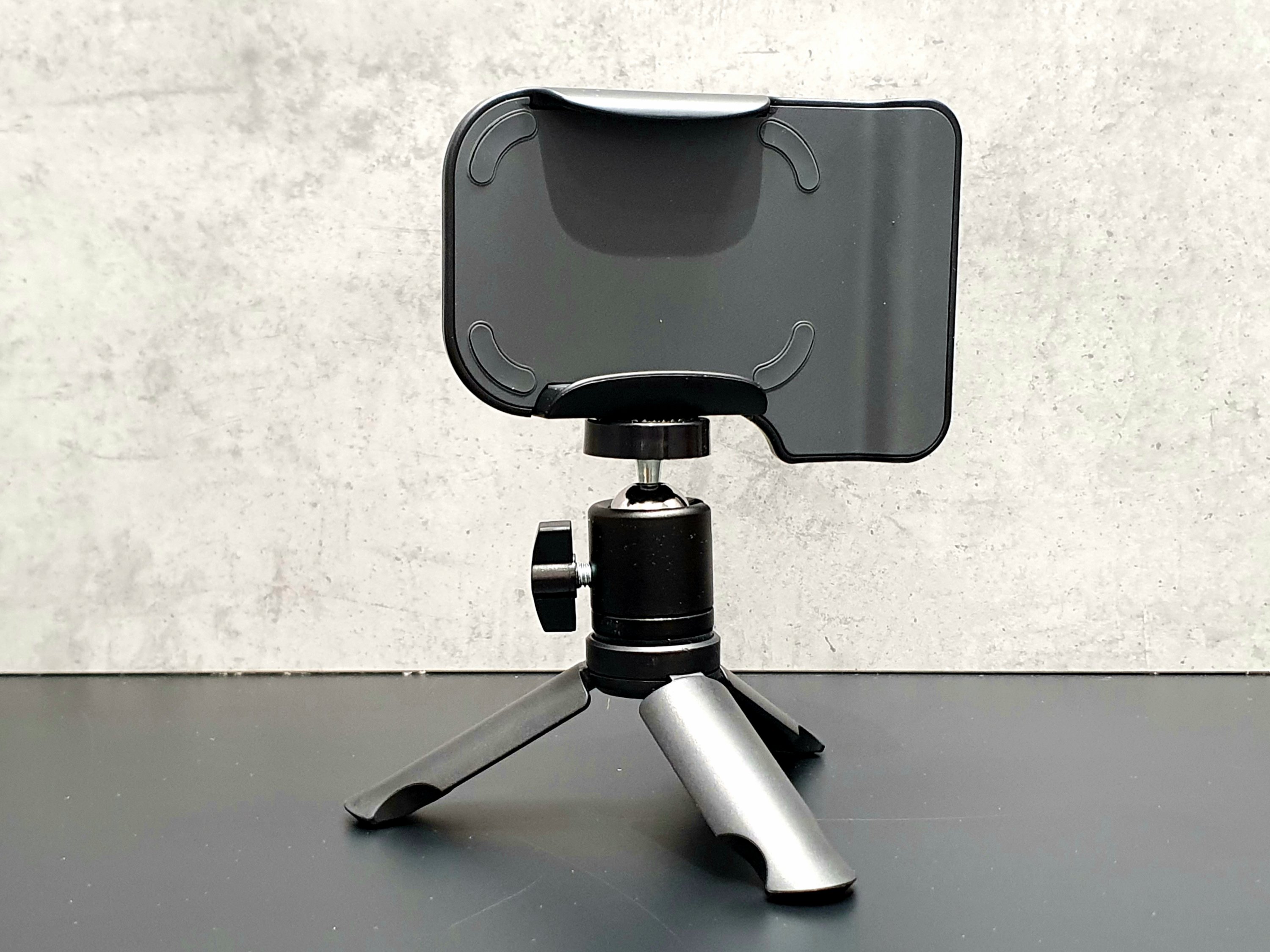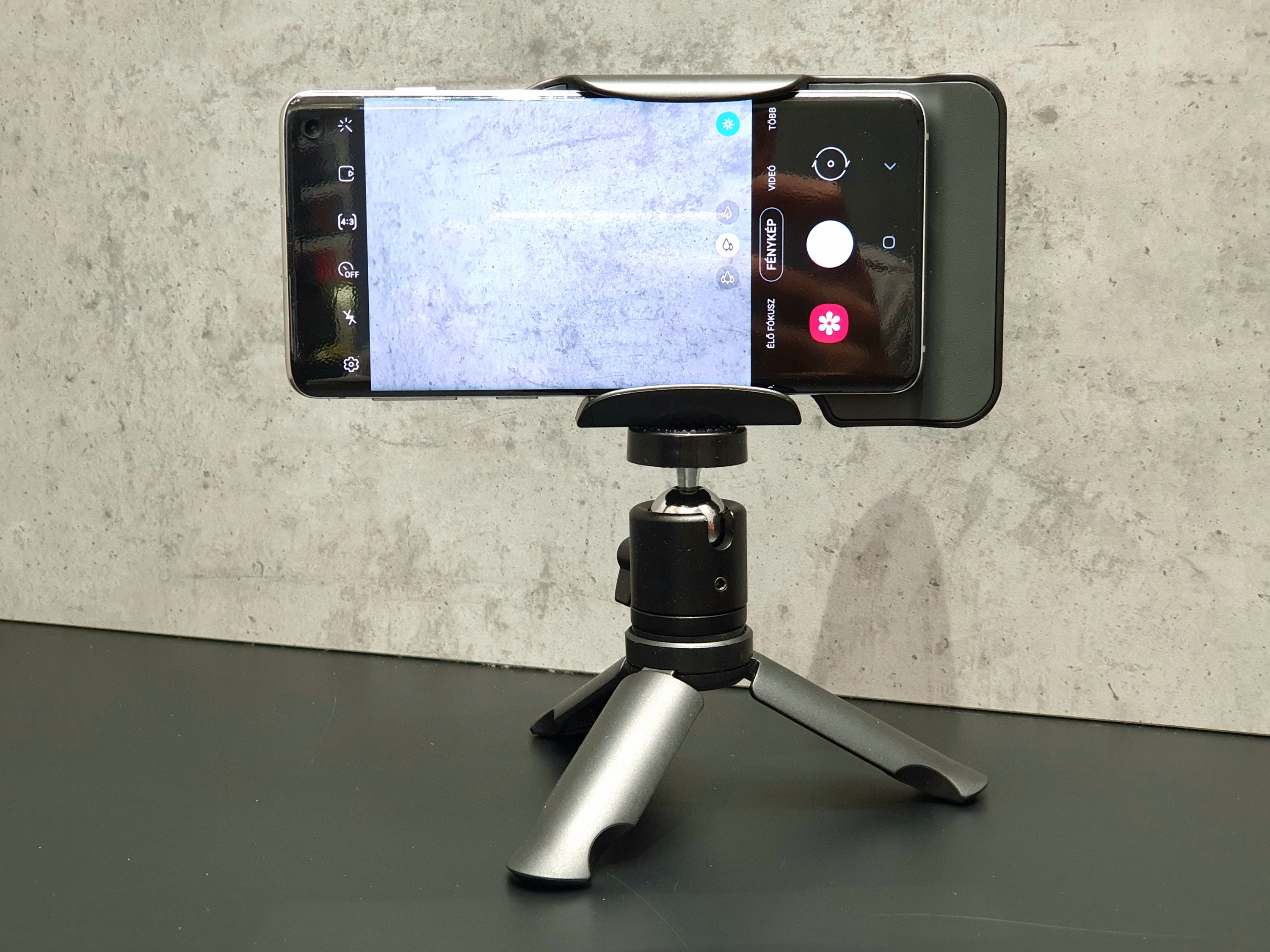Az állványt és a markolatot egy gömbfej kapcsolja össze, ami vízszintes irányban 360°-os forgásra, míg függőlegesben 45°-osra képes. Előbbi videózásnál, afféle pásztázós felvételekre tökéletes lehet, ellenben utóbbinál észleltem, hogy egy Galaxy S10+ már méretes modell, hogy ki tudja tartani merőleges állásban. (Erről egy fotót a lenti galériába mellékeltem.)