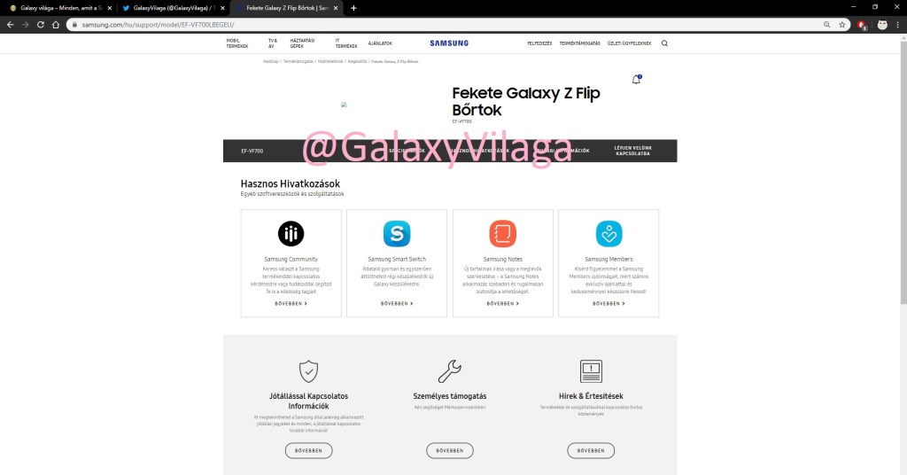A Samsung Magyarország elkezdte feltölteni a többi országhoz hasonlóan a tavaszi újdonságainak kiegészítőit. Igaz, fotókat előre még nem, csak elnevezéseket tette közzé; illetve immáron lehet tudni, hogy milyen színekkel és típusokkal számolhat a magyar piac felhasználói. Az utolsó képet ajánlanám figyelmetekbe, melyen a Galaxy Z Flip egyetlen tokopciója csekkolható.