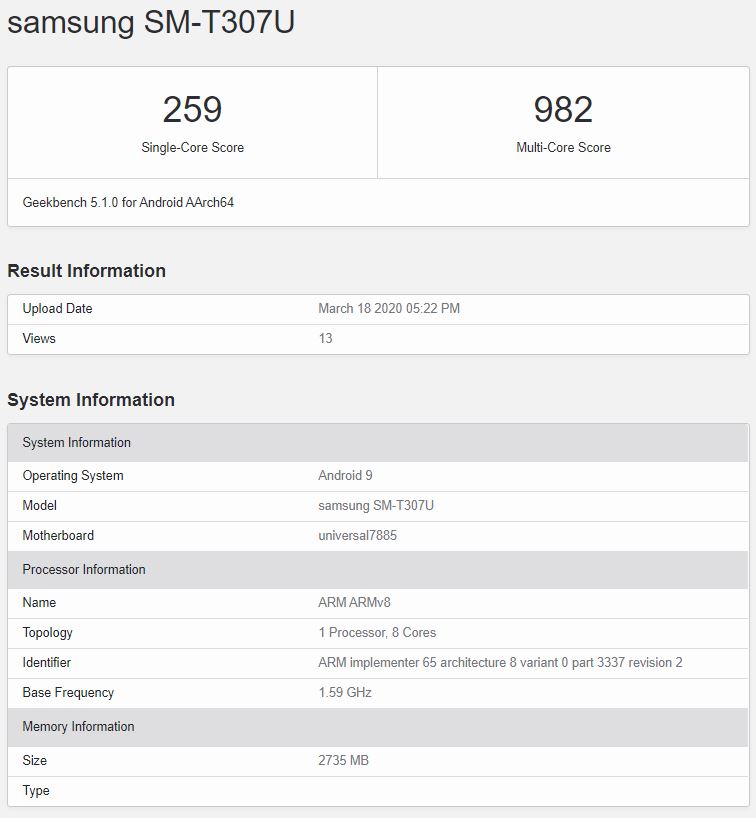 Hónapokkal ezelőtt bukkant fel a Samsungnak egy újabb tabletje, amit csak SM-T307 modellkódon emlegetnek. Egyes források a Galaxy Tab A4S néven tartják számon, ami alapján egyértelműen leszögezhető azon tény, hogy hova pozícionálhatja a dél-koreai vállalat: a középkategóriában – vagy még lejjebb? – szeretnének vele érvényesülni, ami már igényli a felfrissülést, hiszen hazai viszonylatban a Galaxy Tab A8.02019 mindennek tekinthető, csak erőműnek nem. Szerencsére a Galaxy Tab A10.12019 ár/érték arányban szállítja az elvártakat, de 2019-et már magunk mögött tudjuk, 2020 igényli az új termék bevezetését, hogy versenyképesek lehessenek.