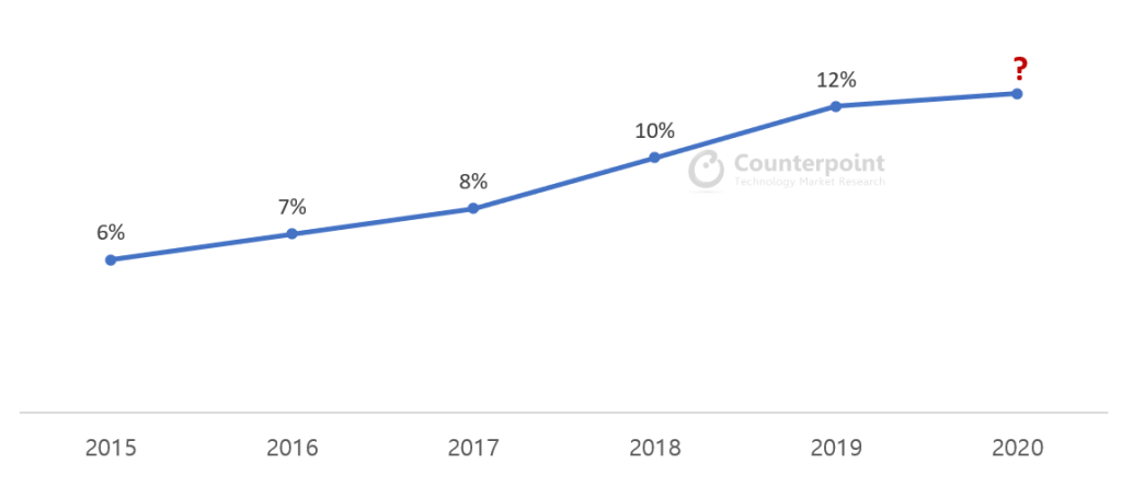 A Galaxy S20 Ultra azon termékek közé tartozik, ahol a kamera setup a legnagyobb arány, mindez 21%-ot jelentene. Már csak az a kérdés, hogy 2020-ban hol áll meg a piac?!