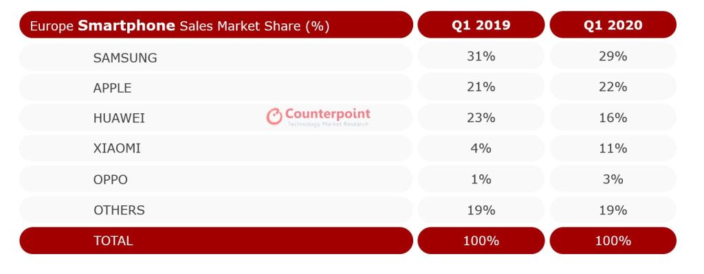 „Az első negyedév gyenge, azonban a koronavírus kitörése tovább erősített mindezt. Az okostelefon-piac csökkenését elsősorban a COVID-19 kitörése okozta a régióban a negyedév második felében. Európában az öt legnagyobb piac márciusban különbözőképpen reagált a helyzetre. Az offline áruházak többsége bezárt, míg az online folytatta tovább működését. Továbbá a gazdasági helyzet visszatartotta a vásárlók diszkrecionális vásárlásait.”
