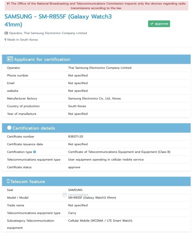 Felhívnám a címsorban írtakra a figyelmet, azaz a ‘Galaxy Watch 3’ elnevezésre, amire megbízhatósági forrás kilétét az NBTC (National Broadcasting and Telecommunication Commission) oldalán berögzített sorok szolgáltatják, ugyanis ott ezen a típusnéven emlegetik az SM-R855F típuskódon nyilvántartott okosórát. Arra lehet következtetni, hogy nem szeretné azt a dél-koreai vállalat, hogy a felhasználói belezavarodjanak az okosóráinak kínálatába, így inkább vélhetően átugorják a ‘Galaxy Watch 2’ elnevezést – mint ahogy azt a Galaxy Note6-nál tették –, amivel bizonyára sokaknak a fejében a Galaxy Watch Active 2 idéződne fel. Másfelől, egy újabb modell eggyel kisebb verziószámmal valóban zavart okozna az éterben, akarom írni, sokaknak a fejében.