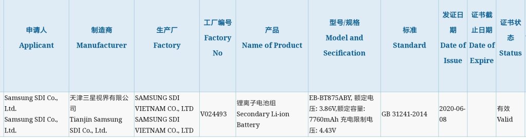 Nem olyan régen a Galaxy Club csapata kiszúrta, hogy 10.000mAh körüli akkumulátorkapacitás kerül a nagyobb Galaxy Tab S7-be, azonban a kisebbről sehol se esett szó egészen idáig, viszont arra választ a the_tech_guy oldala szolgáltat az alábbi tanúsítványfotóval, ami vélhetően a Galaxy Tab S7-be épülhet be.
