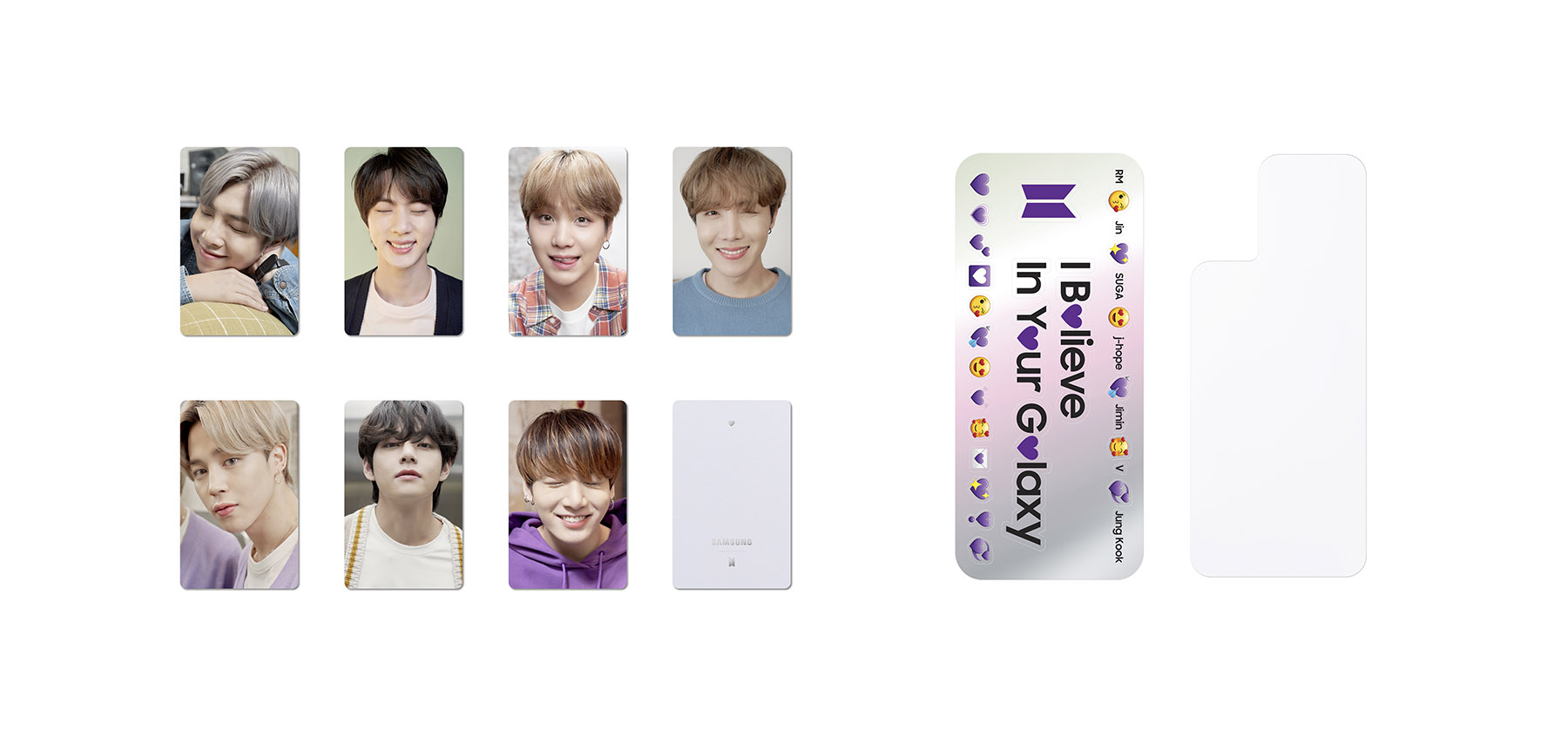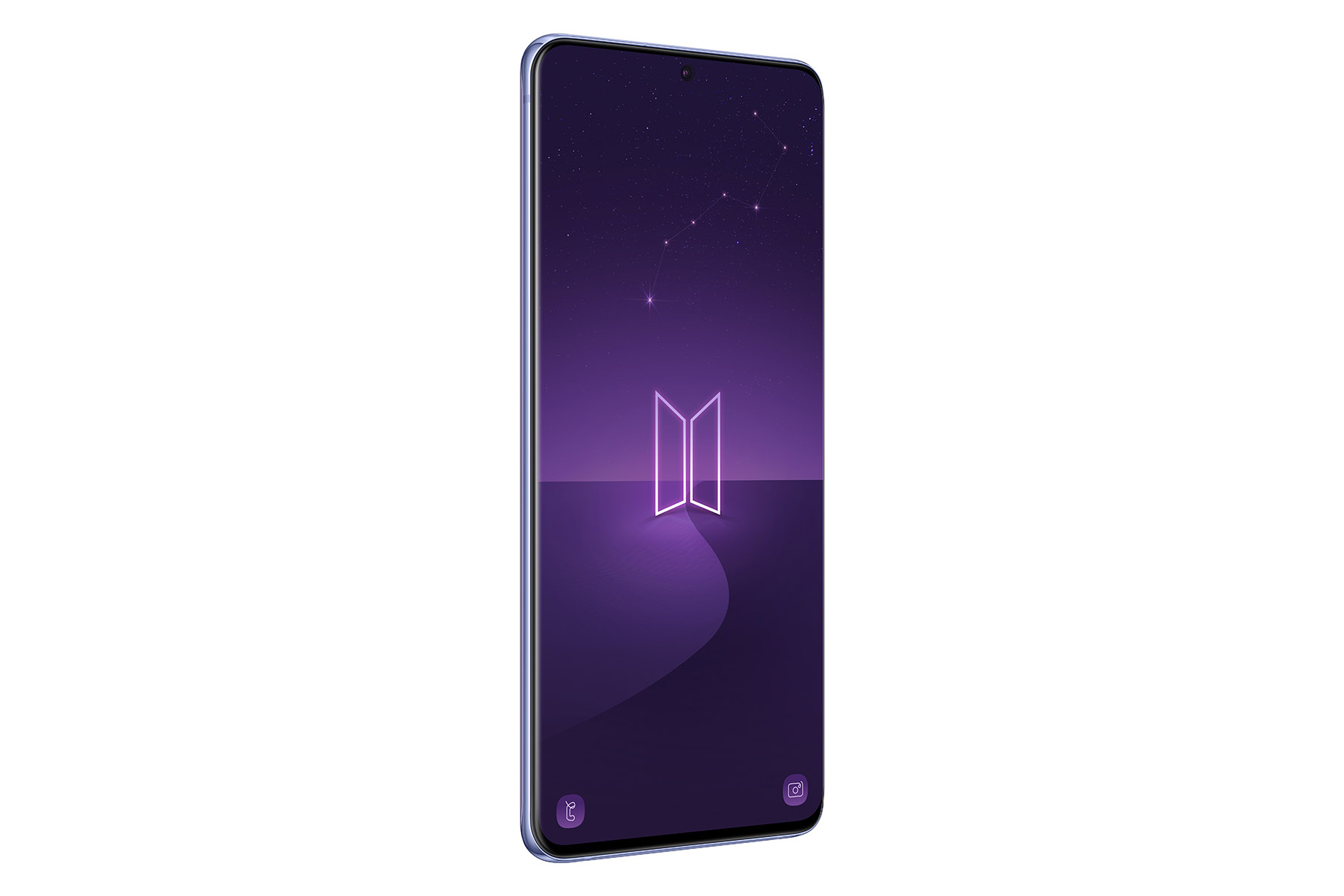 A termékek színénél a „Purple” színkódot emlegetik, de a Galaxy világa stábját továbbra is a Galaxy Z Flip-nél bemutatkozott „Mirror Purple”-re emlékezteti, amit a Samsung Magyarország csak „Tükör Lila” fordítással illetett. Az okostelefon egyedi témával rendelkezik, hogy még exkluzívabb legyen a felhasználók számára, illetve a fentebb felsorolt termékeinek mindegyikét ellátják a fiúegyüttes logójával nagyjából ugyanúgy, mint az olimpiai kiadásos termékekeinél azt szokták tenni.