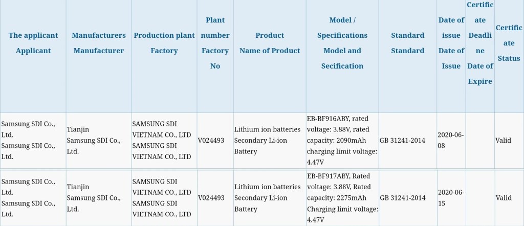 Kezdeném a sort előbbivel, ugyanis a kínai 3C Certificate oldalára berögzítésre került a Galaxy Fold 2 akkumulátor telepduója, hiszen az elődhöz hasonlóan, itt is mindkét résznél helyet kap egy-egy erőforrást ellátó akkupakk, hogy a megközelítőleg 1 napos (értsd: reggeltől estig!) üzemidőt ki lehessen belőle sajtolni átlagos használattal. Ha visszaemlékeztek, az LTE képest Galaxy Fold 4.380mAh-val lett felvértezve, míg a gyorsabb, 5G-s hálózatra felkészített csak 4.235mAh-val. Hozzájuk képest a Galaxy Fold 2-nél 4.365mAh-t olvashatunk le a berögzítésből – bár az nem tisztázott, melyik variáns volna ez!