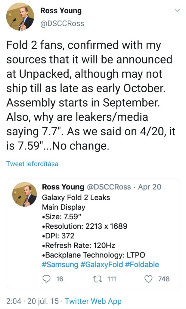 Ezen kívül, újra tisztázza, hogy az áprilisi tweetjéhez képest nem történt változás a készülék szerkezetében. Merthogy több külföldi médium azt közölte le, hogy 7.7 inches belső kijelzőmérettel érkezik, viszont az a valóságban 7.59 inch lesz. Tehát mindenki felejtse el a nagyobb számot, mert téves:
