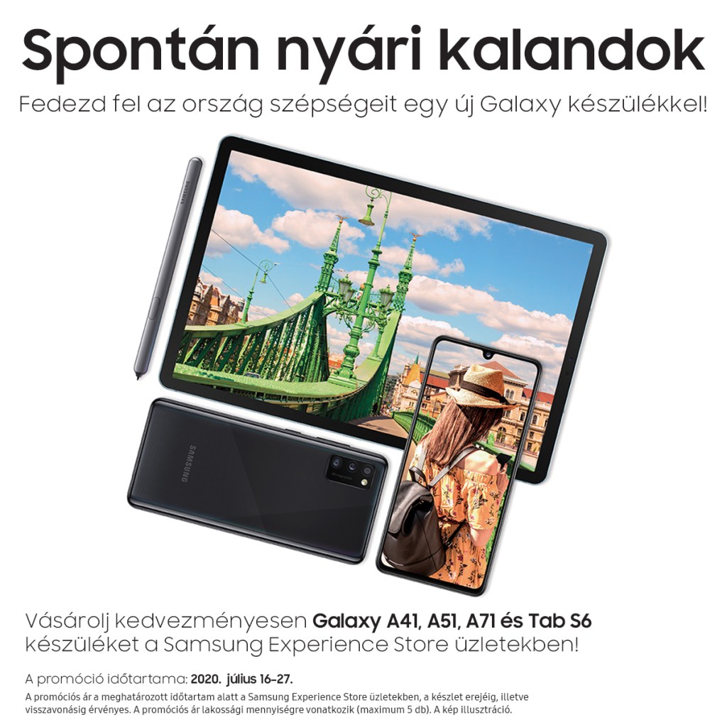 A „Spontán nyári kalandok” mottóra épülő július közepi leértékelési időszakban az okostelefonok körében a fókuszt a 2020-as A-szériás család kapta. Azok közül is a Galaxy A41, ami ilyen mértékű árengedményt nagyjából 1 hónapja kapott. Szintén akciós áron vásárolhatók a nagyobb családtagok, azaz a Galaxy A51 és a Galaxy A71 duója. Külön kiemelném, hogy a nemrég piacra került Galaxy A31 egyelőre még nem erősíti a leárazott készülékek portfólióját, akinek fontos a méretes akkumulátor telep, annak még várnia kell az árlecsapásra.