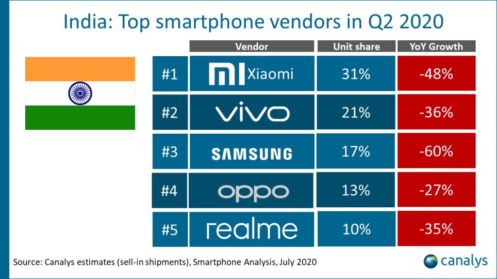 Eléggé számottevő az indai piacon történő okostelefon értékesítés hanyatlása. 2019 második negyedévében megközelítőleg 33 millió termék került eladásra, melynek majdnem 1/3-át a Xiaomi szállított (a Poco-val karöltve), míg 1 évvel később ugyanezen időszakban 17.3 millióról számol be a piackutatócég. A Xiaomi ettől függetlenül a 31%-os piaci részét tartani tudta, de majdnem megfeleződtek a számai. Az országra nézve 48%-os csökkenést lehet felfedezni. Ilyen alacsony negyedévet az elmúlt 4 évben még egyszer sem zárt az iparág.