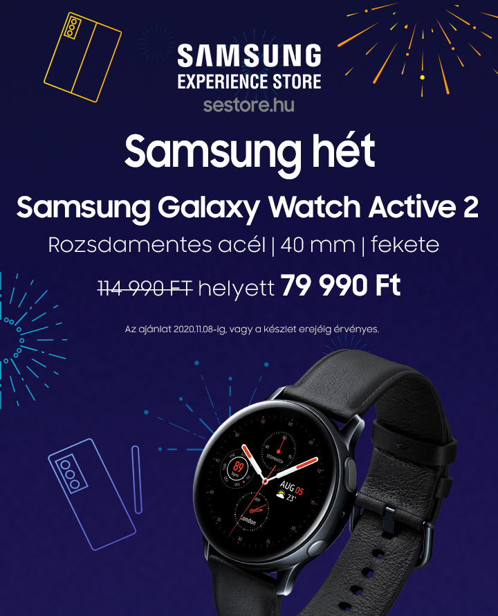 Információnk szerint jó eséllyel belefuthatsz a Bravotel Üzletházak Kft. által üzemeltetett Samsung márkaboltokban olyan Galaxy Watch Active 2 40mm-es rozsdamentes acél okosórára irányuló ajánlatba, amit nem lehet visszautasítani. Ez csak a fekete típusúra (SM-R830NSKAXEH) vonatkozik, összegben pedig 80 ezer körülire kell gondolni, ami elég jól hangzik.