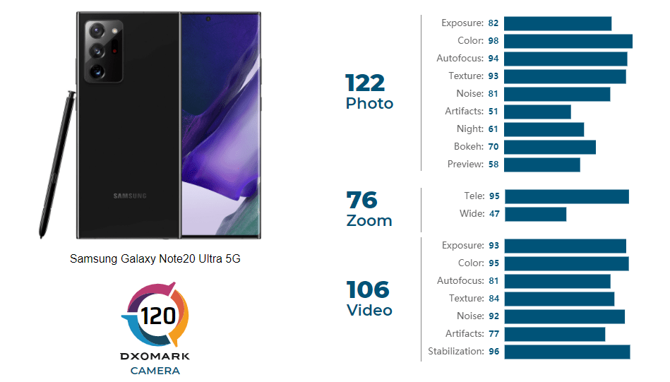 Olyannyira nem lesznek azok, hogy romlott az összesített értéke. Míg az októberben kiadott pontszáma 121-en állt meg, addig a novemberi már csak 120-on. Az idő múlása sem segített rajta, de mi a francot csináltak ez idő alatt a szoftverfejlesztők? Mielőtt a részletekbe bocsájtkoznék, mutatnám az új értékeit, amivel a Galaxy S20 Ultra 5G alatt zárt kamera szempontból: