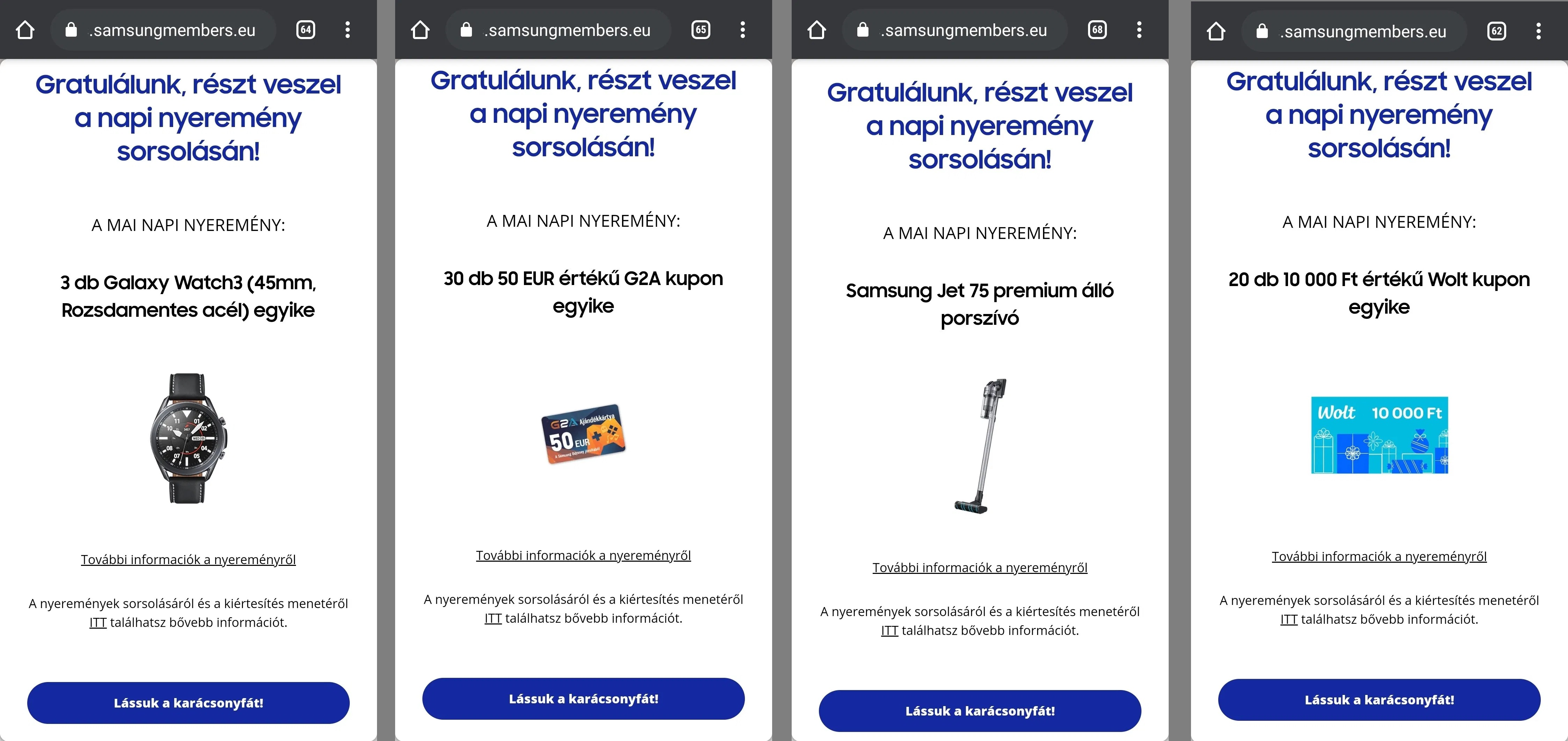 Akik a kezdetek óta olvassák az oldalt, azok tudják, hogy a Samsung Members applikáción belül szinte mindig zajlik valamilyen nyereményjáték; hiszen mindegyikről megemlékeztünk. Ha kíváncsi lennél, eddig milyenek voltak, akkor a címkefelhőre klikkelve informálódhatsz.