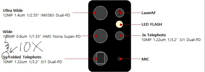 Az ultraszéles szenzor se maradhat ki a repertoárból. Ha a leírást valós, akkor az idei évi csúcskategóriás paraméterek kerültek átültetésre. Adott lesz egy 120° körüli lencse, ami 1.4µm-es pixelekkel dolgozhat. A kameraszigetre elfért még a hátlapi mikrofon is, amit a Galaxy Note20 Ultra-nál a peremre helyeztek el. Úgy fest, nem volt annyira jó megoldás, így korrigálták a hibát. (FRISSÍTÉS: a fentebbi elsőképen, ami a kiszivárgott videóból van, ennek a ténynek ellentmond, így valószínűleg mégis ugyanott találhatjuk.) A LED vaku-nál egyelőre nem várható említésre méltó tény, marad a snassz megoldás nála.