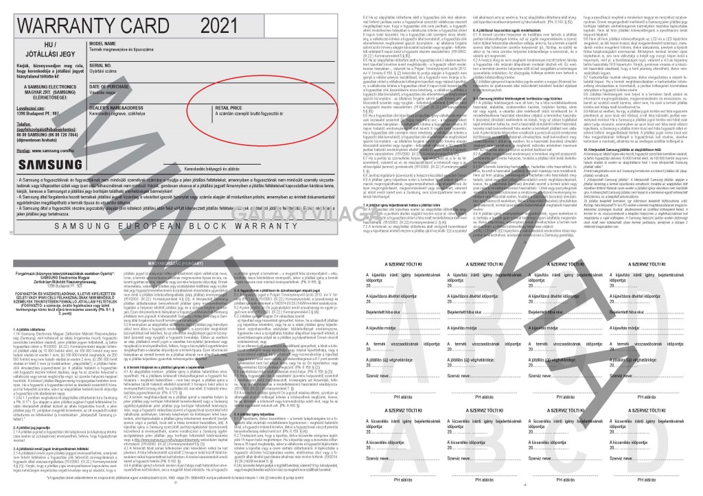 (A Samsung Magyarország kihangsúlyozza, hogy a kiterjesztett jótállás csak a termék javítására vonatkozik. Nem terjed ki a készülék mellé csomagolt tartozékokra és a beépített akkumulátorra! Ezen kívül még egy fontos tény, miszerint ha javítás során főpanel csere történik, akkor sem módosul a jótállás lejáratának dátuma.)