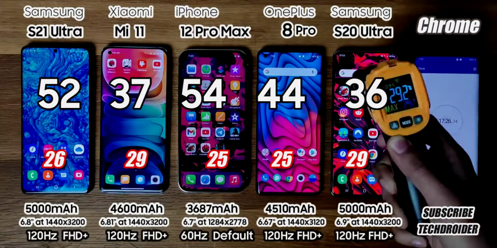 A versenytársak között: a Xiaomi Mi 11, az Apple iPhone 12 Pro Max, a OnePlus 8 Pro, valamint a tavaly tavaszi dél-koreai csúcskategóriás, a Galaxy S20 Ultra 5G vett részt. Már csak azért is lesz érdemes végigpörgetni, mert megválaszolásra kerülhet az a keresztkérdés, miszerint, mennyit fejlődött 1 év leforgása alatt a legújabb Ultra?!
