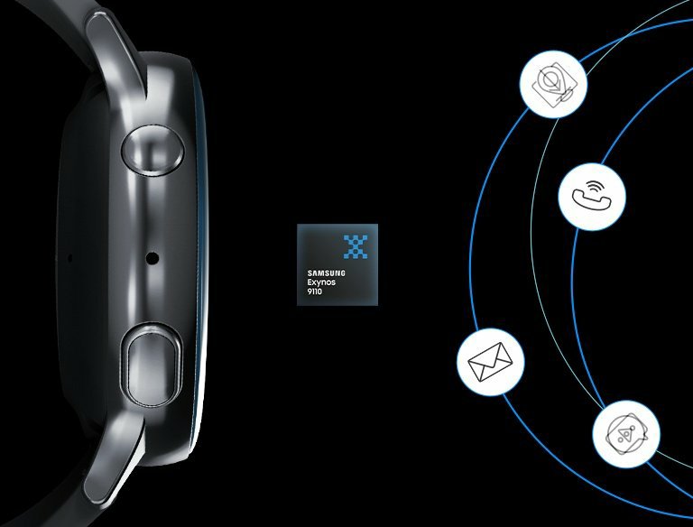 A Galaxy Watch Active 3 biztosan újabb típusú processzorral lesz felvértezve. Szintén könyvelhető, hogy az operációs rendszerénél megtartják a már jól működő Tizen rendszert. Nem változtatnak azon sem, hogy a saját gyártású Exynos lapka adja az erőforrását, ami azért tud meglepetéseket okozni, ha a rajta lévő szoftver jól van optimalizálva. Egyelőre típusszámról nem csiripelnek a madarak, ahogy nanométeres gyártástechnológiáról sem. (Oké, látom, hogy az illusztrációs fotón Exynos 9110-t említenek, de nagyon a termék hajnalán vagyunk.)
