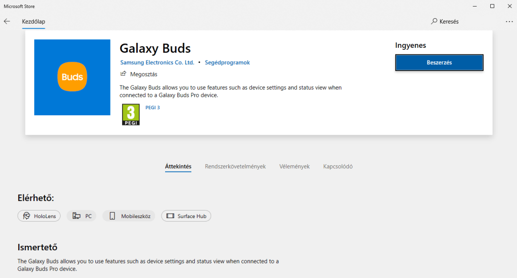 Ez az első hivatalos program, ami támogatja a két rendszer kommunikációját. Derenghet a „Galaxy Buds Manager” nevű is, melyet harmadik fél fejlesztett le; viszont az azóta eltávolításra került a Microsoft hivatalos áruházából. Ha tippelnem kellene, akkor valószínűleg a most érkezett office változat miatt történhetett.