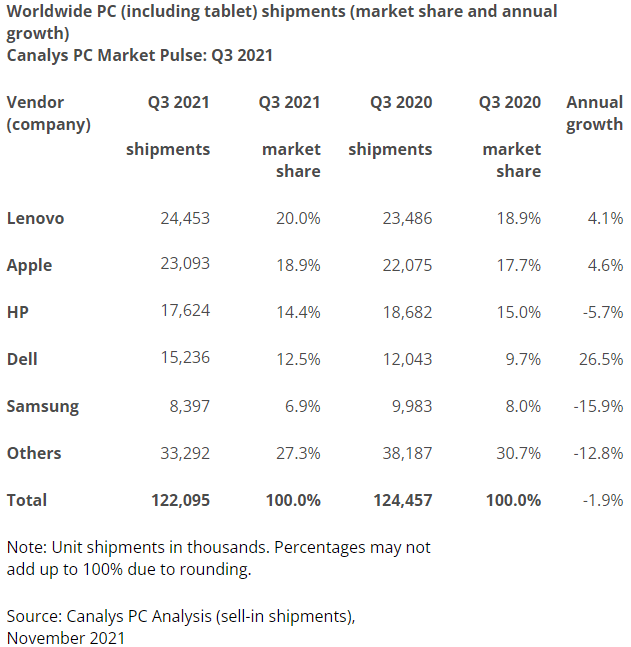 „A kimagasló növekedési sorozat vége ellenére a táblagépek piaca továbbra is erős, figyelembe véve a COVID-19 világjárványt megelőző hosszú hanyatlási időszakot. (…) Az öt egymást követő negyedéves növekedés – az ázsiai csendes-óceáni térség kivételével – minden régióban visszaesett. A világ nagy részén a fogyasztói igény és a fiatalabb gyermekek alapfokú digitális oktatásának támogatása a világjárvány csúcspontjához képest lelassult.”