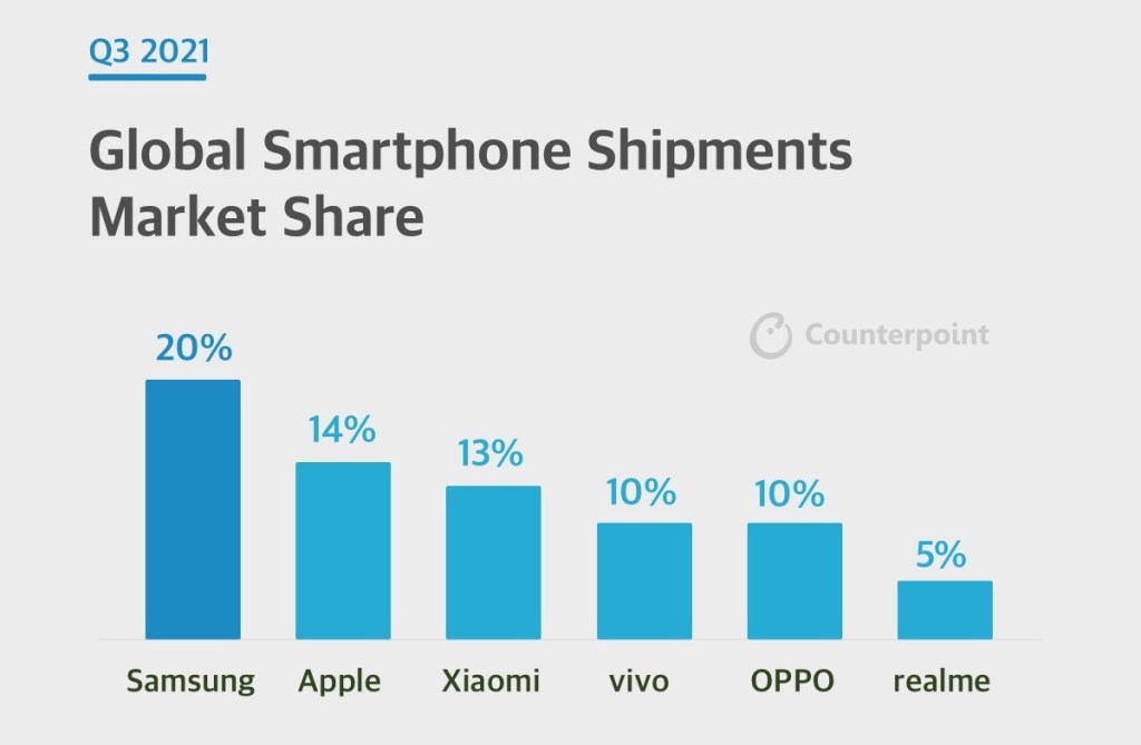 A kereskedelem legmeghatározóbb időszaka zajlik, aaz az év utolsó negyedéve, azonban az eladásokról majdcsak jövő év elején fogunk tudni beszámolni. Most a Counterpoint Research elemzésének köszönhetően 2021 harmadik negyedévére helyezném a fókuszt, hiszen a dél-koreai vállalatnak ismételten sikerült nagyot mennie. Nagyot, hiszen nem szabad megfeledkezni arról, hogy ebben az időszakban indult útjának az Apple új termékcsaládja, amely a felsőkategóriában eléggé komoly versenytársnak bizonyult. A cikk azonban a globális teljes okostelefon eladásra koncentrál, ahol komoly előnnyel zárt a Samsung.