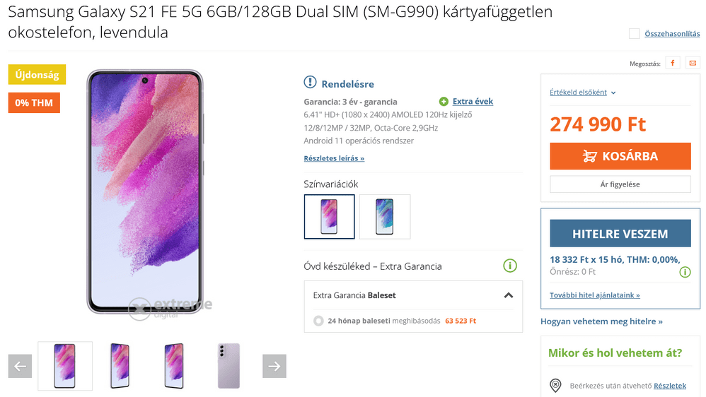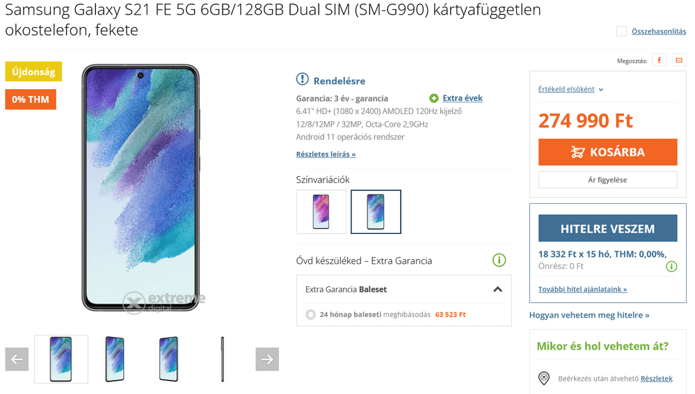 Kezdésként a legégetőbb kérdésről, az áráról, ugyanis az újdonsült Galaxy S21 FE 5G 274 990 Ft-os nyitóáron fog debütálni, legalábbis, ha lehet hinni a kiírásuknak.