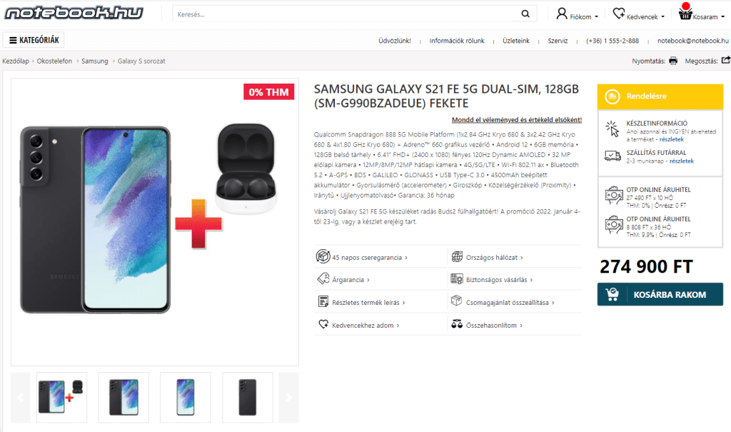 | Galaxy S21 FE 5G 128GB | Fekete [SM-G990BZADEUE] Levendula (?) [SM-G990BLVDEUE] Olívazöld (?) [SM-G990BLGDEUE] Fehér [SM-G990BZWDEUE] | 274 990 Ft |