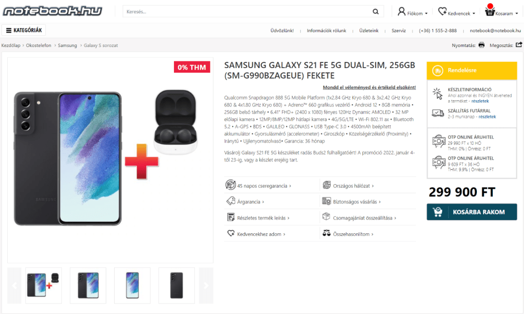 „Vásárolj Galaxy S21 FE 5G készüléket ráadás Buds2 fülhallgatóért! A promóció 2022. január 4-től 23-ig, vagy a készlet erejéig tart.”