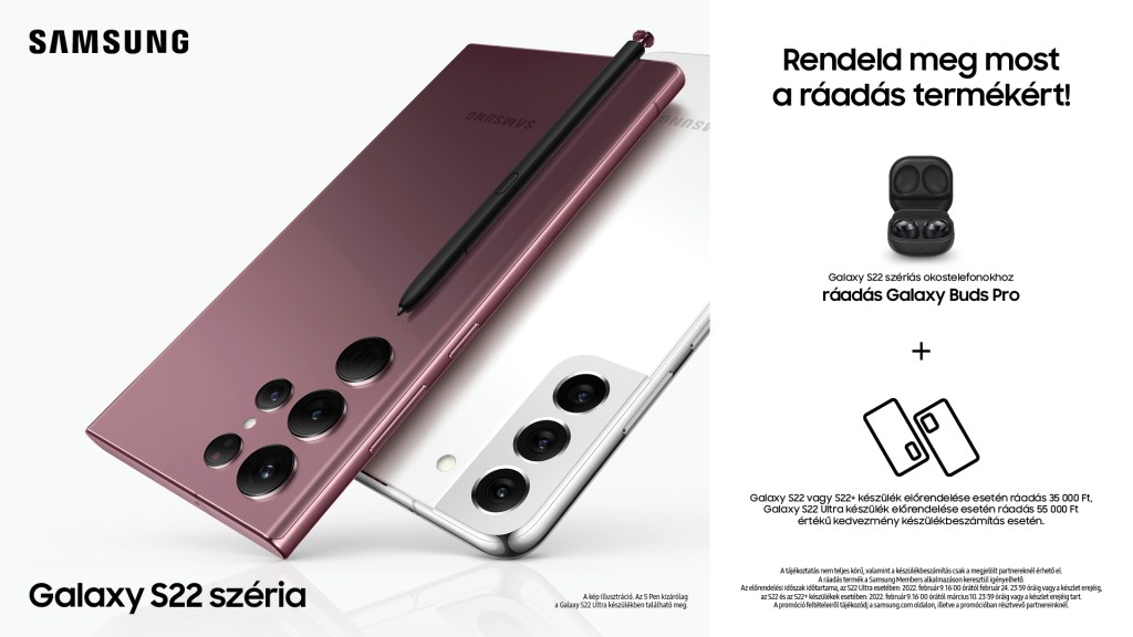 - a Galaxy S22, a Galaxy S22+ és a Galaxy S22 Ultra esetében: samsung_galaxy_s22_elorendelo_promocio@ogilvy.com