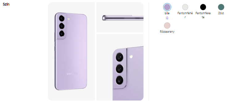 A teljesség kedvéért leírnám, hogy eddig magyarországi forgalomban a Galaxy S22 5G 8/128GB-os változata: fantomfehérben, fantomfeketében, zöldben és rózsaaranyban; míg 8/256GB-os variánsa: fantomfehérben és fantomfeketében volt megvásárolható. Most melléjük csapódott a lila szín mind a két modell esetében.