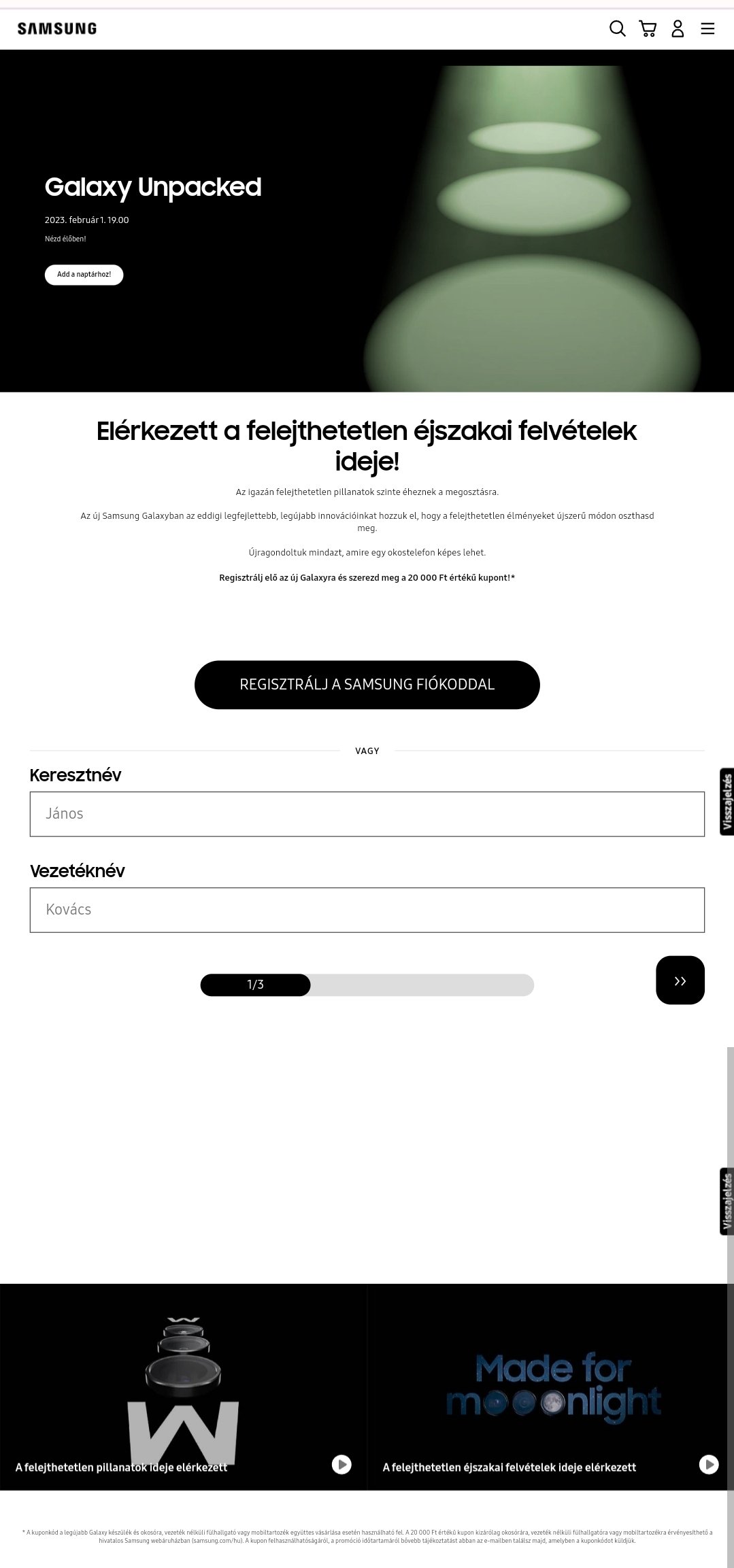 Pillanatfotó a Samsung Magyarország aloldaláról.