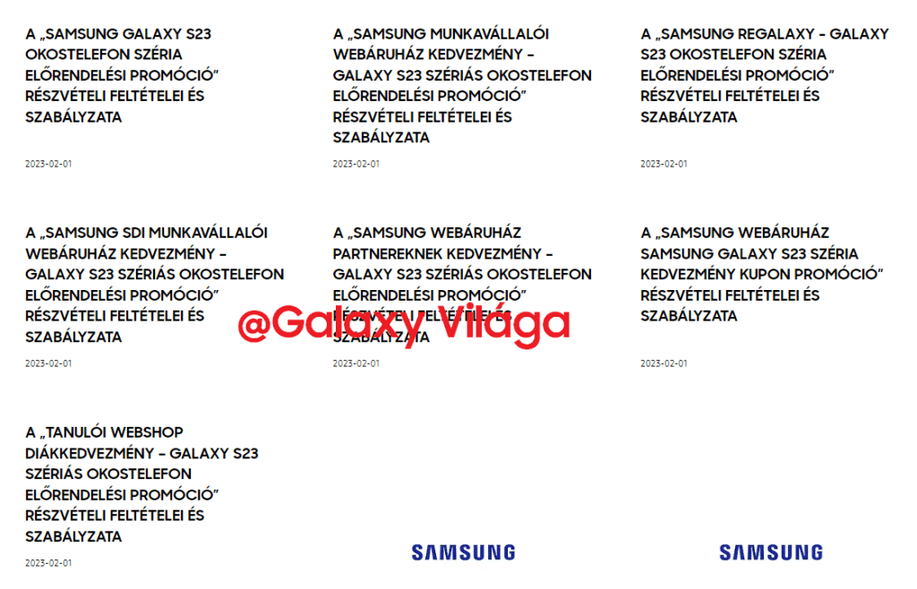 - A „Samsung munkavállalói webáruház kedvezmény – Galaxy S23 szériás okostelefon előrendelési promóció” részvételi feltételei és szabályzata [Link]