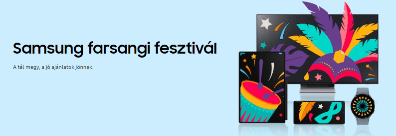 A Samsung Magyarország farsangi promóciója: 2023. február 16. 10 óra és február 27. 9 óra között zajlik, valamint a készlet erejéig. Jó látni, hogy az éjféli kifutást lecserélték reggelire, így mindenki tud egyet aludni rá.