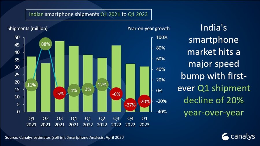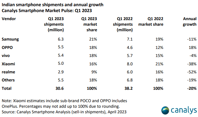 „Az indiai piac az év eleji küzdelmekkel nézett szembe, míg azt a beszállítók folyamatosan próbálták élénkíteni. A 2022 negyedik negyedévének gazdasági mutatója egyértelműen azt sugallta, hogy a kereslet rövid távon lelassul; erre a 2023 első negyedéve se hozott cáfolatot. (…) A Samsung hatékony volt a gyorsan változó modell elhelyezéssel az offline térben. Ebben a negyedévben az új, 5G-képes Galaxy A-sorozat nagyot futott.”
