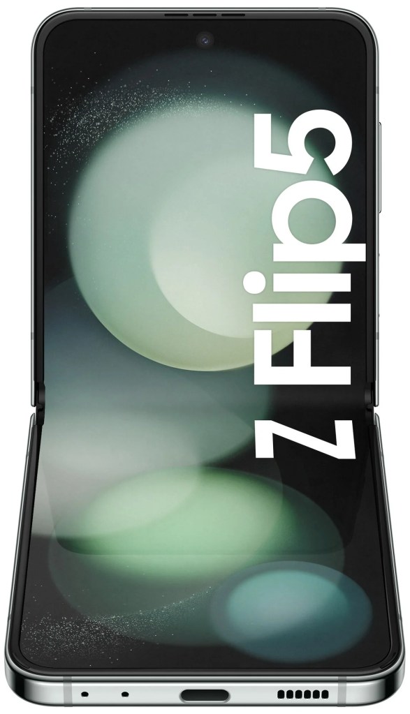 Most viszont ugorjunk a Galaxy Z Flip5 5G-re, ami négy alapszínnel kápráztathatja el az érdeklődőit. A netre szivárgott hivatalos fotók sok mindenre rávilágítanak. Az egyik, hogy a Samsung nem akarja kihangsúlyozni a mappaszerű előlapon helyet foglaló kijelzőt. Helyette inkább olyan grafikával promózza, ami beleolvasztja a fekete alaphátterébe. A másik, hogy a bekapcsológomba épített ujjlenyomat-érzékelő nem kopott ki a szériából. Voltak olyan pletykák, miszerint a képernyőbe épülhet, ám ez megcáfolásra került – hiszen maga a gomb nem türemkedik ki, hanem az elődök mintájára ellaposodik, hogy az ujjbegyet fel tudja venni. A harmadik pedig az, hogy vélhetően az IPx8-as IP-tanúsítványon se módosítottak, mert eléggé kecses a külleme.