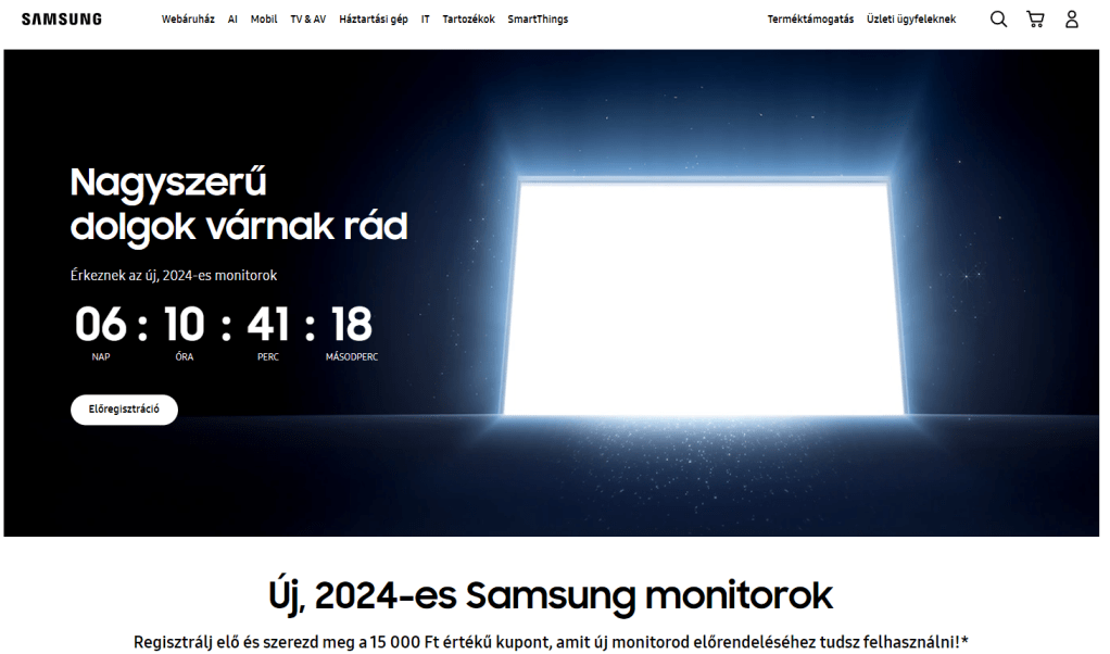 Júniusban sem maradunk termékcsoporthoz kapcsolódó Unpacked esemény nélkül. Igaz, a Samsung ezt a kifejezést inkább az MX termékeinél szokta elsütni, Jómagam amolyan gyűjtőfogalomként használom, hiszen magába foglalja azt, hogy valami újdonság elé nézünk, melyet egyfajta várakozás övez. Most sem lesz másképp, ugyanis, ha ellátogattok a https://www.samsung.com/hu/handraiser/mnt24/ alweboldalra, akkor egy visszaszámlás fogadhat, illetve egy illusztráció, miszerint most a sor a 2024-es IT-hez kapcsolódó megjelenítőkön lesz a fókusz, azaz a monitorokon.