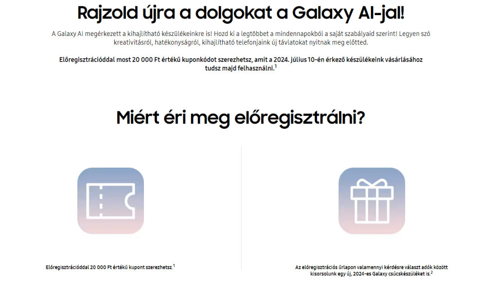 A leleplező eseményre 2024. július 10-én (szerdán) 15 órás kezdéssel kerül sor, melyet számos streaming felületen fognak közvetíteni, de majd aznap kitérek erre külön cikkben. Most egy sokkal fontosabb tényre hívnám fel a figyelmet, ugyanis még cirka fél napotok van előregisztrálni a Samsung Magyarország oldalán, vagy más csatornán. De hogy miért érdemes inkább a hazai képviselet mellett tenni le a voksot, azt mutatnám az oldal linkjével és képernyőfotójával: https://www.samsung.com/hu/unpacked/