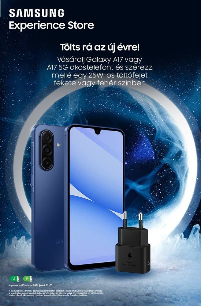 Érdemes kiemelni, hogy a Galaxy A17 termékvonal egészére kiterjesztették az ajándék 25W-os töltőadapteres promóciót. Már nem csak az 5G-s modell, hanem a sima LTE-s verzió is részesül belőle, ráadásul a vásárló szabadon választhat színt is. Kicsit más a kép, ha a Telekom kínálatát csekkoljuk, ahol szintén van lehetőség (előfizetői) csomag nélkül termékvásárlásra. Ott igaz nincsen jelen se a 4G-s variáns, sem pedig az 5G képesnek a kisebb tárhelyű variációja – ellenben a Galaxy A17 5G-t 256GB-os belső tárhellyel 82.500 Ft-ért megkapjátok. Ugyanolyan viszonteladó, mint a Samsung Experience Store-ok, csak éppen annyi a hátrányuk, hogy a töltőfejnél színválasztási opció, mert mellé van alapból csomagolva.