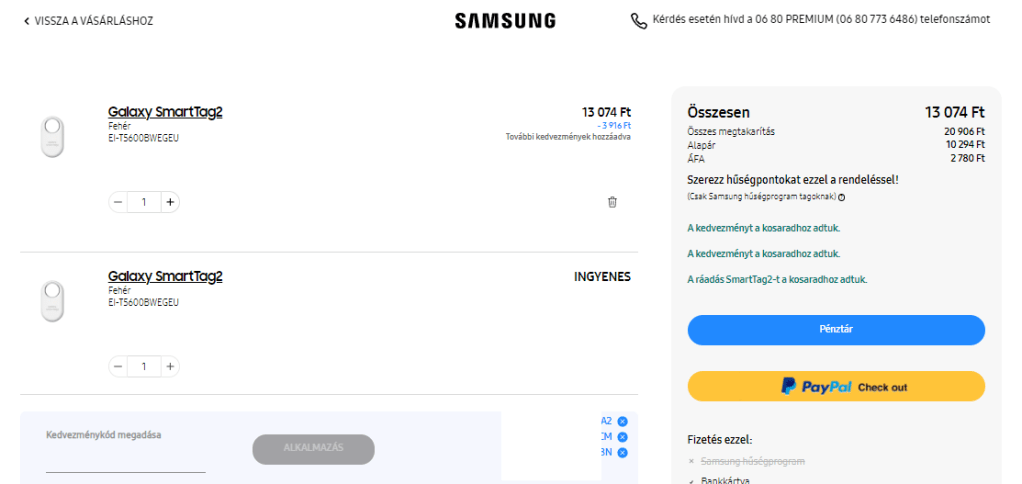 A Samsung.com webáruházában a „Kedvezménykód megadása” mezőre szintén felhívnám a figyelmetek, hiszen, akik előregisztráltak, azok érvényesíthetik az e-mailben megküldött kódot; illetve a chaten kérhetnek további instrukciókat a végár csökkentésére. Nemmellesleg, van egy aloldalunk, ahol sok okosságot találhattok.