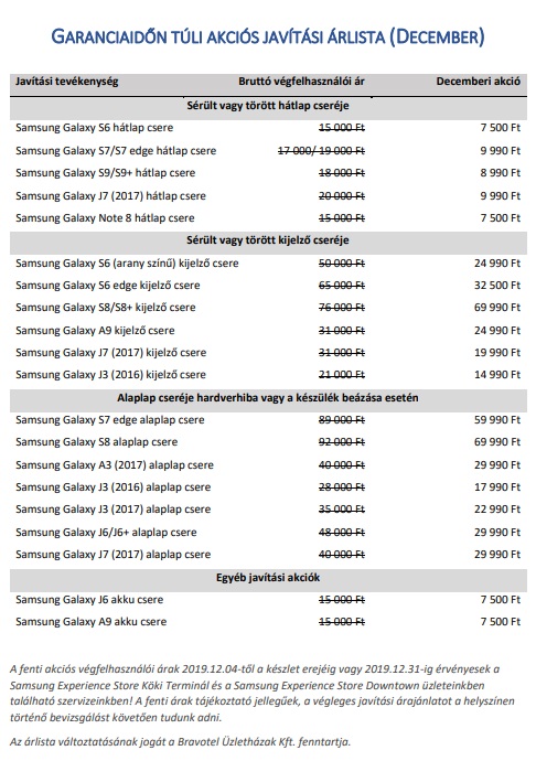 - a Galaxy Z Flip kijelző cseréje: ~242 ezer forint,