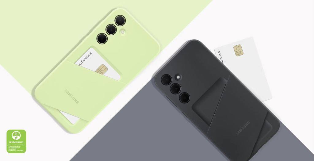 A kártyatartós tok csak a Galaxy A35 5G készülékre érhető el, amivel egy kicsit azt mondatja, hogy a prémium szegmenstől messzebbre lett pozícionálva. A hőre lágyuló poliuretán (TPU) anyagból készült megoldás megvédi az okostelefont a napi karcolásoktól és leejtésektől, ugyanis minimális mértékben rugalmassággal rendelkezik.