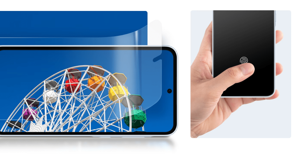 Átlátszó védelem a karcok ellen. Szó sincs üvegfóliáról, viszont egy olyan megoldásról annál inkább, ami a zsebkarcoktól megvédi a kijelzőnket. Másrészről, az ujjlenyomat-olvasó ugyanolyan pontossággal fog általa működni, mint ha rajta se lenne. A csomag két fóliát tartalmaz, valamint egy segédegységet, amelynek segítségével elkerülhetjük az elcsúszott felhelyezést.