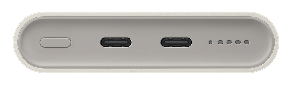 Zárásképpen még az újrahasznosított anyagokról írnék, hiszen 5.9%-ban tartalmaz, melynek 30%-a fogyasztás utáni újrahasznosított műanyagból tevődik össze. A termék csatlakozó oldalán található a be-/kikapcsológomb, illetve egy négypontos LED szintjelző, ami a töltési kapacitás mutatására hivatott.