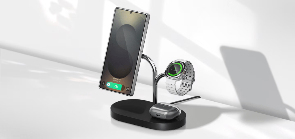 Rég hoztam kiegészítő frontról újdonságokat, most azonban megtörném a csendet, ugyanis a Samsung előállt egy univerzális töltőállvánnyal, ami minden termékünk töltésére hivatott – legalábbis, ha azokat a felsőkategóriából válogatjuk össze. Utoljára egy univerzális okosóra töltőt mutattam be, amihez képest a jelenlegi, fényévekkel szebb dizájnnal rendelkezik, valamint hasznosabb. A GP-PWU024WIABW típusszámon futó tartozék a Samsung harmadik felért felelős részlegéből származik; hiszen a hivatalos kiegészítők előtt az EP előtag foglal helyet. Elég csak ránézni és minden kérdést eloszlat.